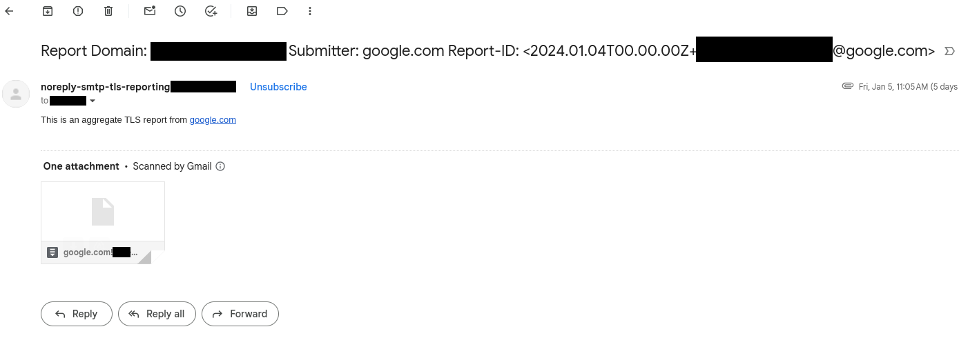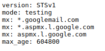 v=TLSRPTv1; rua=mailto:sysadmin@example.com